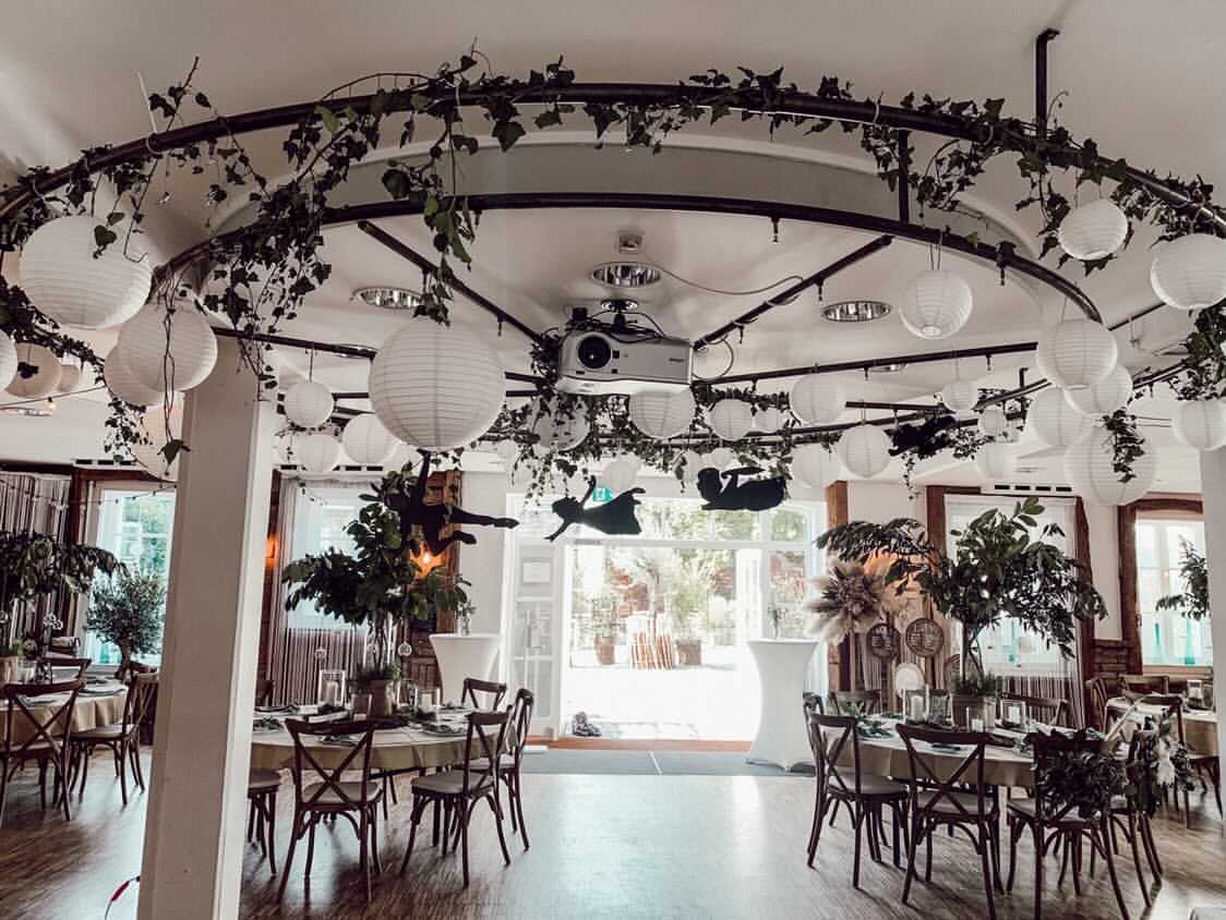 Dezentes Ambient-Licht und weitere Dekorationsbeleuchtung im Innen- wie im Außenbereich tauchen unsere Räume ins passende Licht. Auch ein Beamer sowie die Mikrofonanlage sind in unseren Angebotspaketen enthalten.